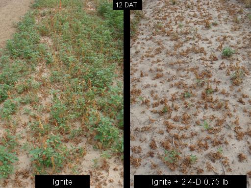 Ignite<BR>Ignite + 2,4-D 0.75 lb<BR>12 DAT<BR>