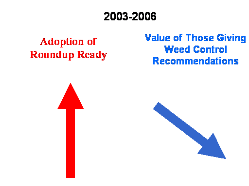 Adoption of Roundup Ready<BR>Value of Those Giving Weed Control Recommendations<BR>2003-2006<BR>