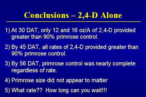 <BR>By 45 DAT, all rates of 2,4-D provided greater than 90% primrose control.