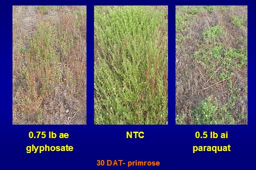 <BR>          glyphosate					   paraquat<BR>30 DAT- primrose<BR>