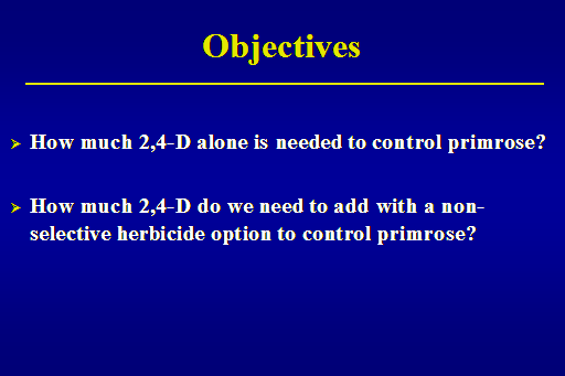 Objectives<BR>How much 2,4-D alone is needed to control primrose?
