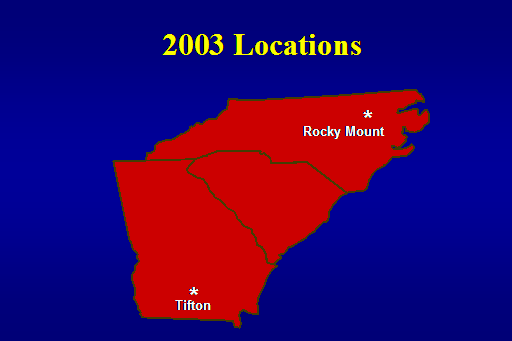 2003 Locations<BR>Rocky Mount<BR>*<BR>Tifton<BR>*<BR>