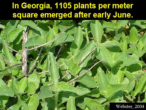 In Georgia, 1105 plants per meter square emerged after early June.  <BR>Webster, 2004<BR>