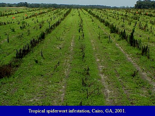 Tropical spiderwort infestation, Cairo, GA, 2001.  <BR>