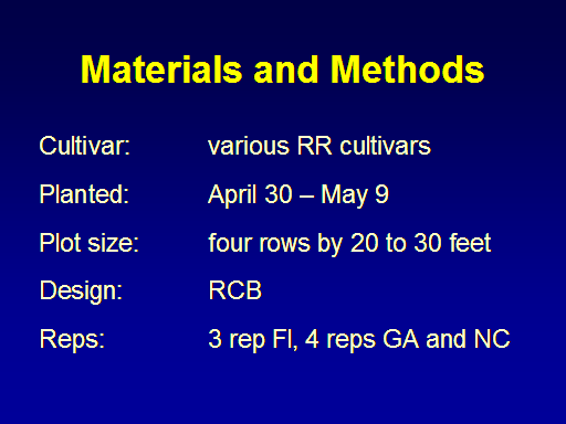 Materials and Methods<BR>Cultivar:		various RR cultivars