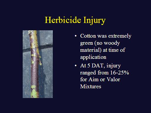 Herbicide Injury <BR>Cotton was extremely green (no woody material) at time of application
