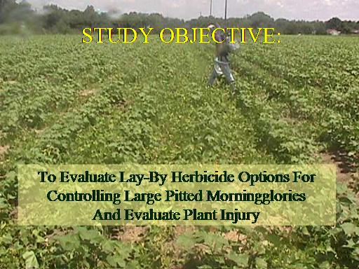 STUDY OBJECTIVE:<BR>To Evaluate Lay-By Herbicide Options For Controlling Large Pitted Morningglories