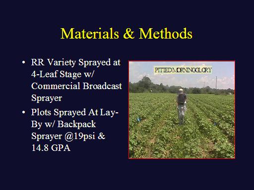Materials & Methods<BR>RR Variety Sprayed at 4-Leaf Stage w/ Commercial Broadcast Sprayer