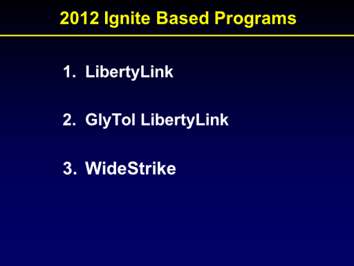 2012 Ignite Based Programs <BR> LibertyLink <BR> <BR> GlyTol LibertyLink <BR> <BR> WideStrike <BR>