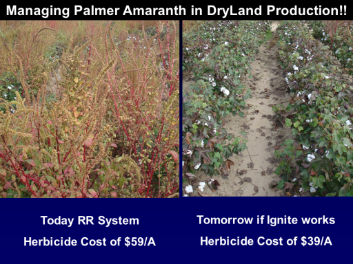 Tomorrow if Ignite works <BR>Herbicide Cost of $39/A<BR>Today RR System <BR>Herbicide Cost of $59/A<BR>Managing Palmer Amaranth in DryLand Production!!<BR>
