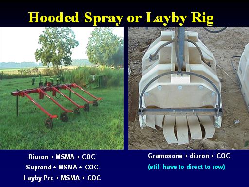 <BR>Hooded Spray or Layby Rig<BR>Diuron + MSMA + COC <BR>Suprend + MSMA + COC <BR>Layby Pro + MSMA + COC<BR>Gramoxone + diuron + COC <BR>(still have to direct to row)<BR>
