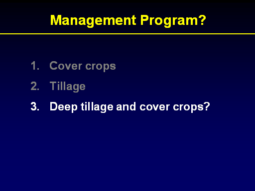 Management Program? <BR>  Cover crops <BR>  Tillage <BR>  Deep tillage and cover crops? <BR>