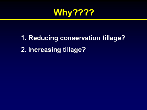 Why???? <BR>Reducing conservation tillage? <BR>Increasing tillage? <BR>