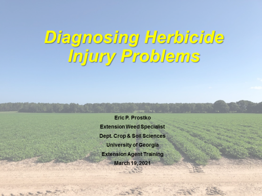 Diagnosing Herbicide  Injury Problems<BR>Eric P. Prostko <BR>Extension Weed Specialist <BR>Dept. Crop & Soil Sciences <BR>University of Georgia <BR>Extension Agent Training <BR>March 19, 2021<BR>