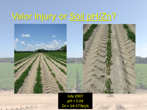 Valor Injury or Soil pH/Zn?<BR>July 2007 <BR>pH = 5.04 <BR>Zn = 14-17 lbs/a<BR>