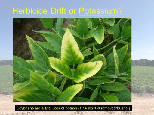 Herbicide Drift or Potassium?<BR>Soybeans are a BIG user of potash (1.14 lbs K20 removed/bushel)<BR>