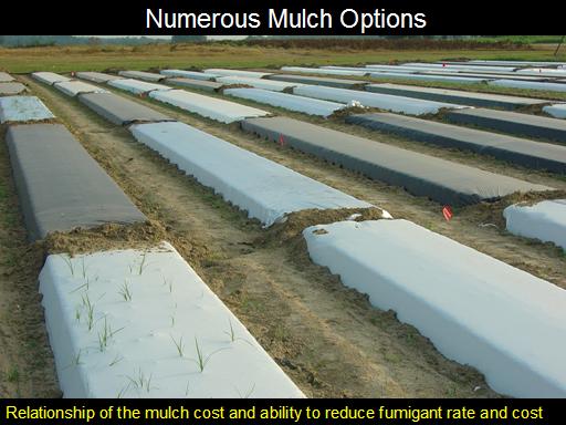 Numerous Mulch Options<BR>Relationship of the mulch cost and ability to reduce fumigant rate and cost<BR>