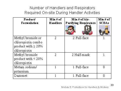 17<BR>Module 5: Protections for Handlers & Workers<BR>Number of Handlers and Respirators  Required On-site During Handler Activities<BR>