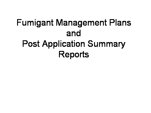 Fumigant Management Plans and  Post Application Summary Reports<BR>