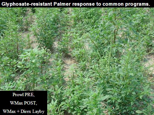 Prowl PRE,  <BR>WMax POST,  <BR>WMax + Direx Layby<BR>Glyphosate-resistant Palmer response to common programs.<BR>