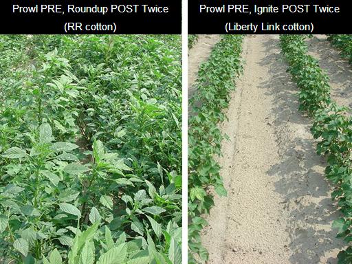 Prowl PRE, Roundup POST Twice <BR>(RR cotton)<BR>Prowl PRE, Ignite POST Twice <BR>(Liberty Link cotton)<BR>