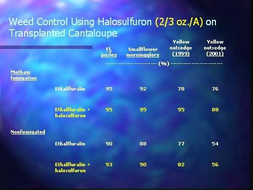 Weed Control Using Halosulfuron (2/3 oz./A) on Transplanted Cantaloupe<BR>