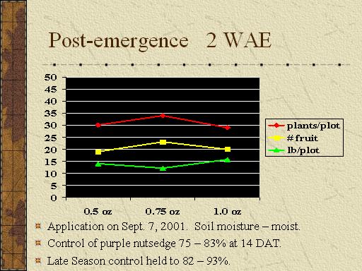 Post-emergence   2 WAE<BR>Application on Sept. 7, 2001.  Soil moisture – moist.