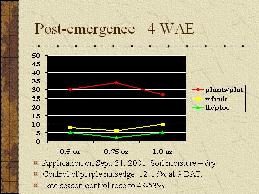 Post-emergence   4 WAE<BR>Application on Sept. 21, 2001. Soil moisture – dry.
