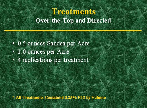 TreatmentsOver-the-Top and Directed<BR>0.5 ounces Sandea per Acre
