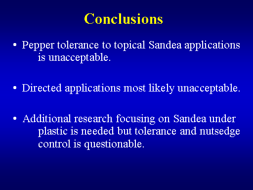 Conclusions<BR>Pepper tolerance to topical Sandea applications 	is unacceptable.