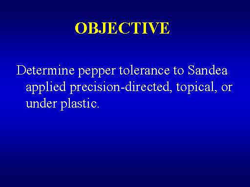 OBJECTIVE<BR>Determine pepper tolerance to Sandea applied precision-directed, topical, or under plastic.<BR>