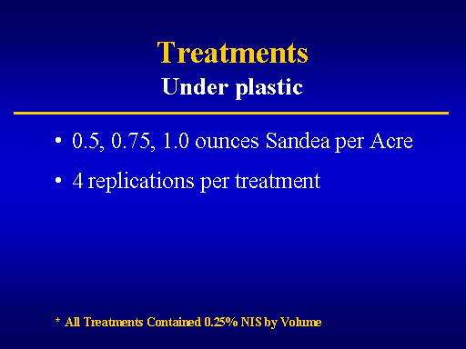 TreatmentsUnder plastic<BR>0.5, 0.75, 1.0 ounces Sandea per Acre