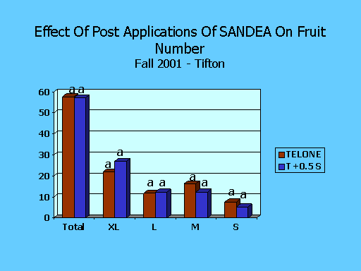Effect Of Post Applications Of SANDEA On Fruit Number Fall 2001 - Tifton<BR>a<BR>a<BR>a<BR>a<BR>a<BR>a<BR>a<BR>a<BR>a<BR>a<BR>
