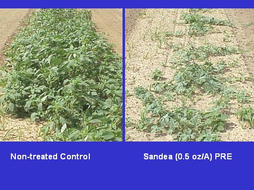 Non-treated Control		      Sandea (0.5 oz/A) PRE<BR>