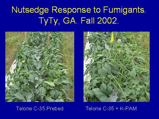 Nutsedge Response to Fumigants. TyTy, GA. Fall 2002.<BR>Telone C-35 Prebed	    Telone C-35 + K-PAM<BR>