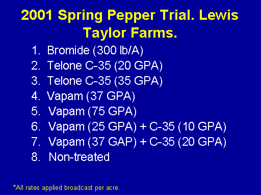 2001 Spring Pepper Trial. Lewis Taylor Farms.<BR>1.  Bromide (300 lb/A)