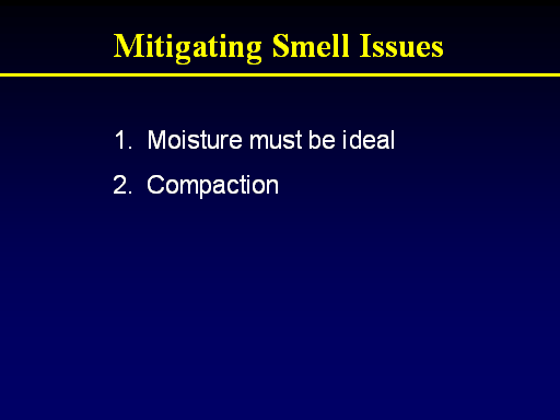 1.  Moisture must be ideal <BR>  Compaction <BR> <BR>		<BR>Mitigating Smell Issues<BR>