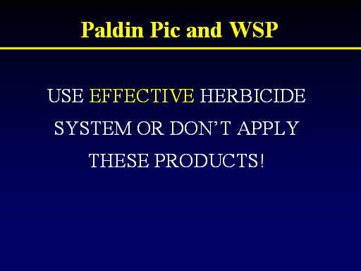 Paldin Pic and WSP<BR>USE EFFECTIVE HERBICIDE <BR>SYSTEM OR DON’T APPLY <BR>THESE PRODUCTS!<BR>
