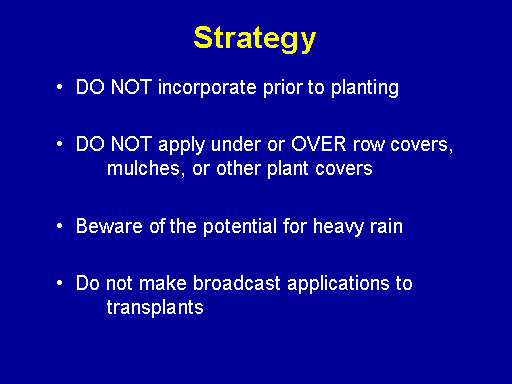 <BR>DO NOT apply under or OVER row covers, 	mulches, or other plant covers
