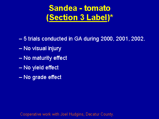 Sandea - tomato(Section 3 Label)*<BR>5 trials conducted in GA during 2000, 2001, 2002.