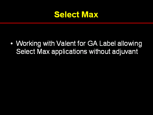 Select Max<BR>Working with Valent for GA Label allowing Select Max applications without adjuvant <BR> <BR>