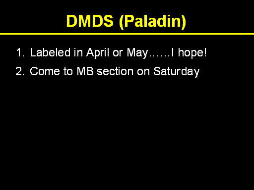 Labeled in April or May……I hope! <BR>Come to MB section on Saturday<BR>DMDS (Paladin)<BR>