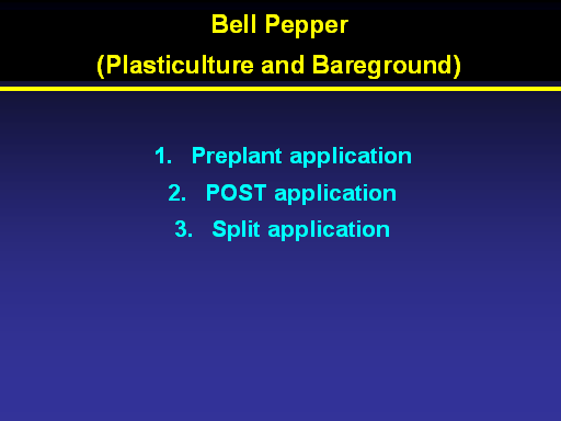 Preplant application <BR>POST application <BR>Split application<BR>Bell Pepper <BR>(Plasticulture and Bareground)<BR>