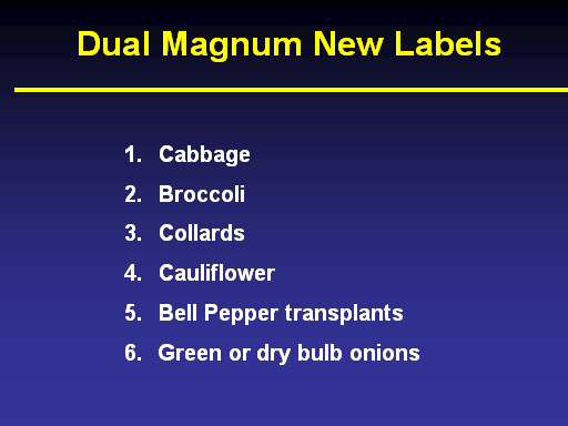 Dual Magnum New Labels <BR>  Cabbage <BR>  Broccoli <BR>  Collards <BR>  Cauliflower <BR>  Bell Pepper transplants <BR>  Green or dry bulb onions<BR>