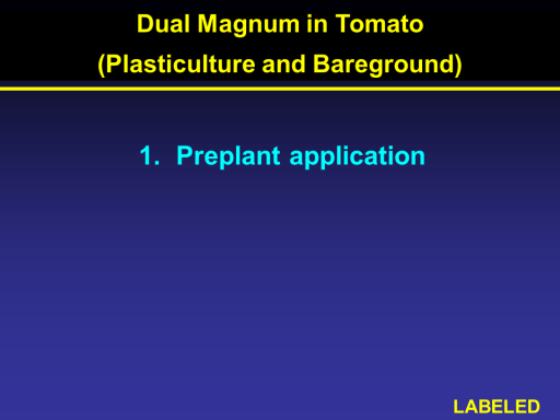 Preplant application<BR>Dual Magnum in Tomato <BR>(Plasticulture and Bareground)<BR>LABELED<BR>
