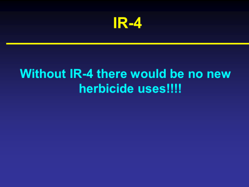 IR-4<BR>Without IR-4 there would be no new herbicide uses!!!! <BR>