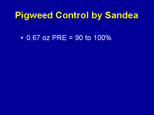 Pigweed Control by Sandea<BR>0.67 oz PRE = 90 to 100%