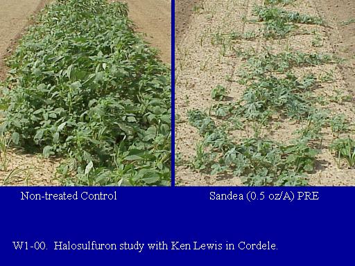 Non-treated Control			      Sandea (0.5 oz/A) PRE<BR>W1-00.  Halosulfuron study with Ken Lewis in Cordele.<BR>