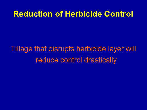 Reduction of Herbicide Control<BR>Tillage that disrupts herbicide layer will reduce control drastically<BR>