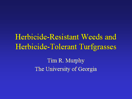 Herbicide-Resistant Weeds and Herbicide-Tolerant Turfgrasses<BR>Tim R. Murphy <BR>The University of Georgia<BR>